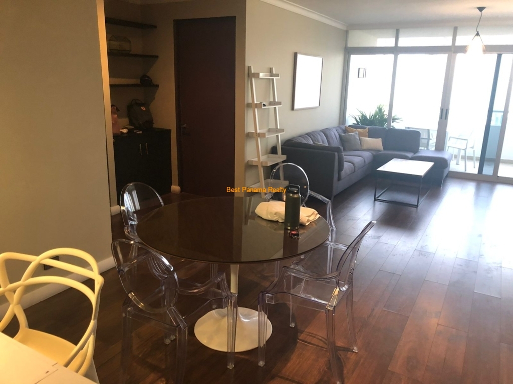 Apartamento en Costa del Este de 140m2, cuenta con 2 recamaras, 2 baños, sala comedor, cuarto y baño de servicio, balcon amplio, 2 estacionamientos.